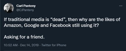 If traditional media is “dead,” then why are the likes of Amazon, Google and Facebook still using it?